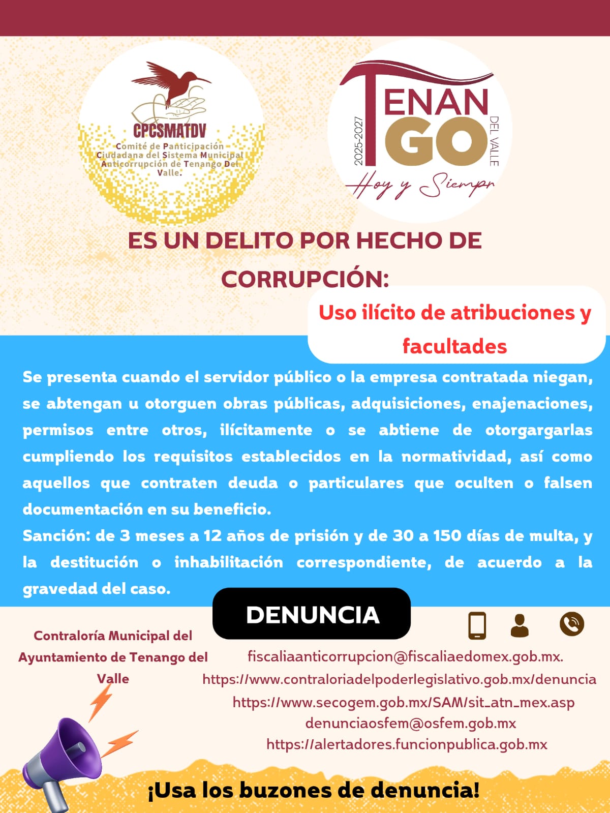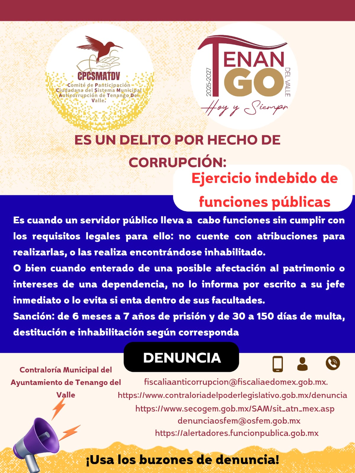 La Contraloría Municipal es una entidad o dependencia dentro del Gobierno del Municipio de Tenango del Valle, encargada de supervisar y controlar la correcta administración de los recursos públicos, así como la legalidad y transparencia en la gestión de los asuntos municipales. Su objetivo es garantizar que los fondos públicos se utilicen de manera adecuada, eficiente y conforme a la ley.